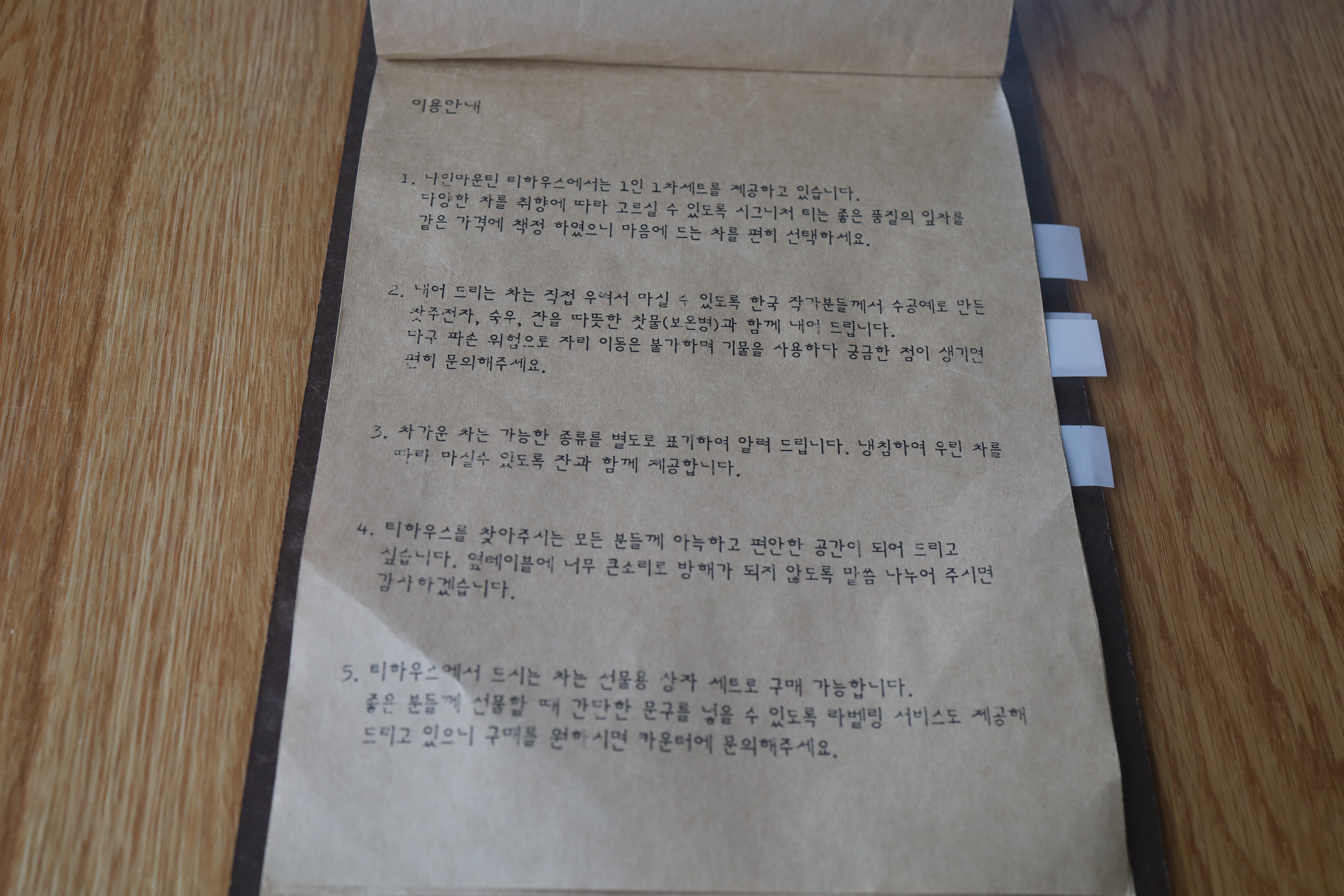 처음에는 차가 조금 비싸다는 생각을 했지만, 이 찻집을 나오면서 우리 다음에 또 오자는 이야기를 하며 나왔는데 충분히 그 값어치를 하는 곳이라고 생각한다.