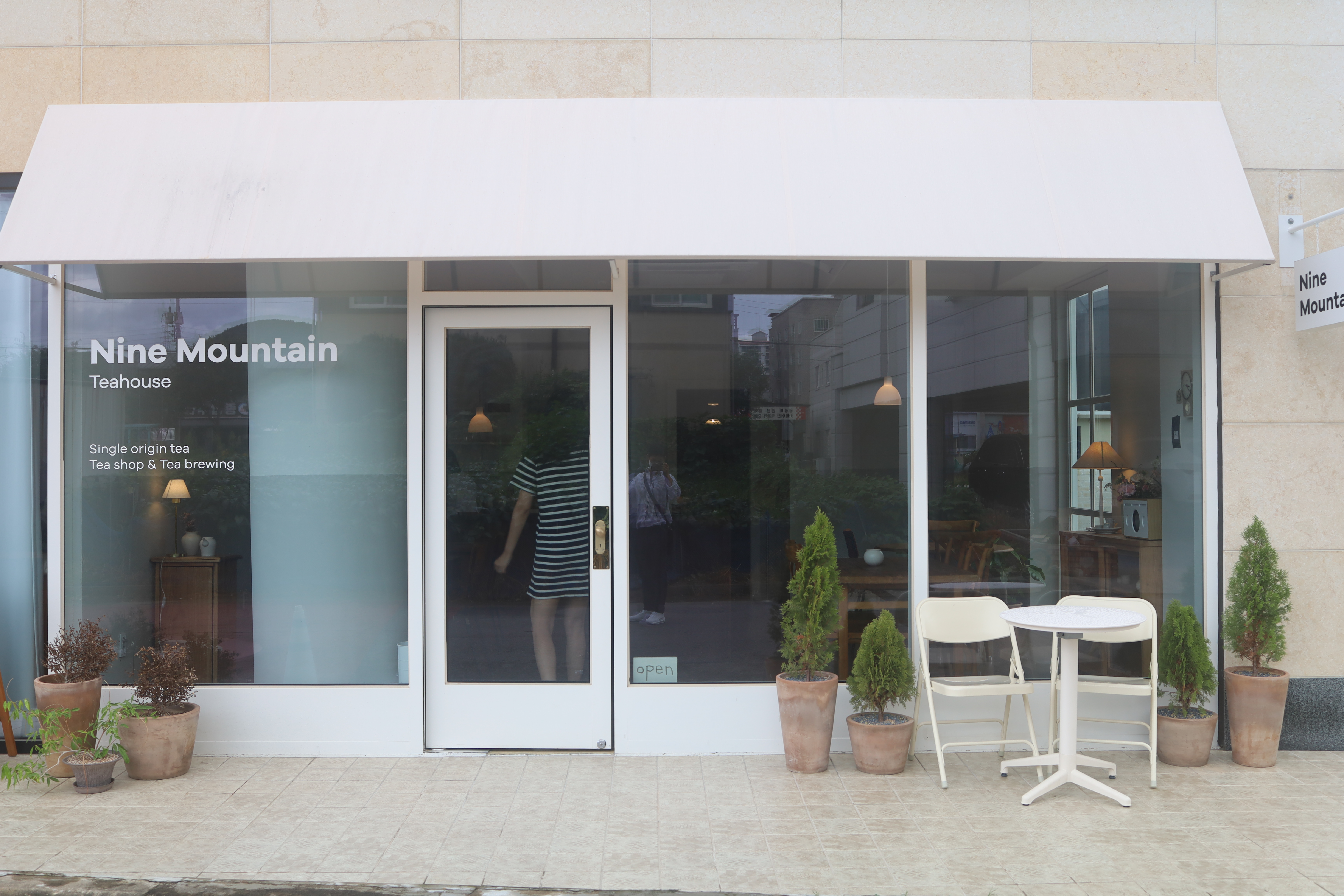 조용한 골목길에 위치해 있는 Nine Mountain Teahouse는 위 사진처럼 외관이 깔끔한 화이트 톤으로 되어있고, 카페 옆 조그만한 공간에 잔디가 심어져 있는데, 들어가서 보니 이 공간이 카페의 아주 특별한 공간의 역할을 해주고 있었다.