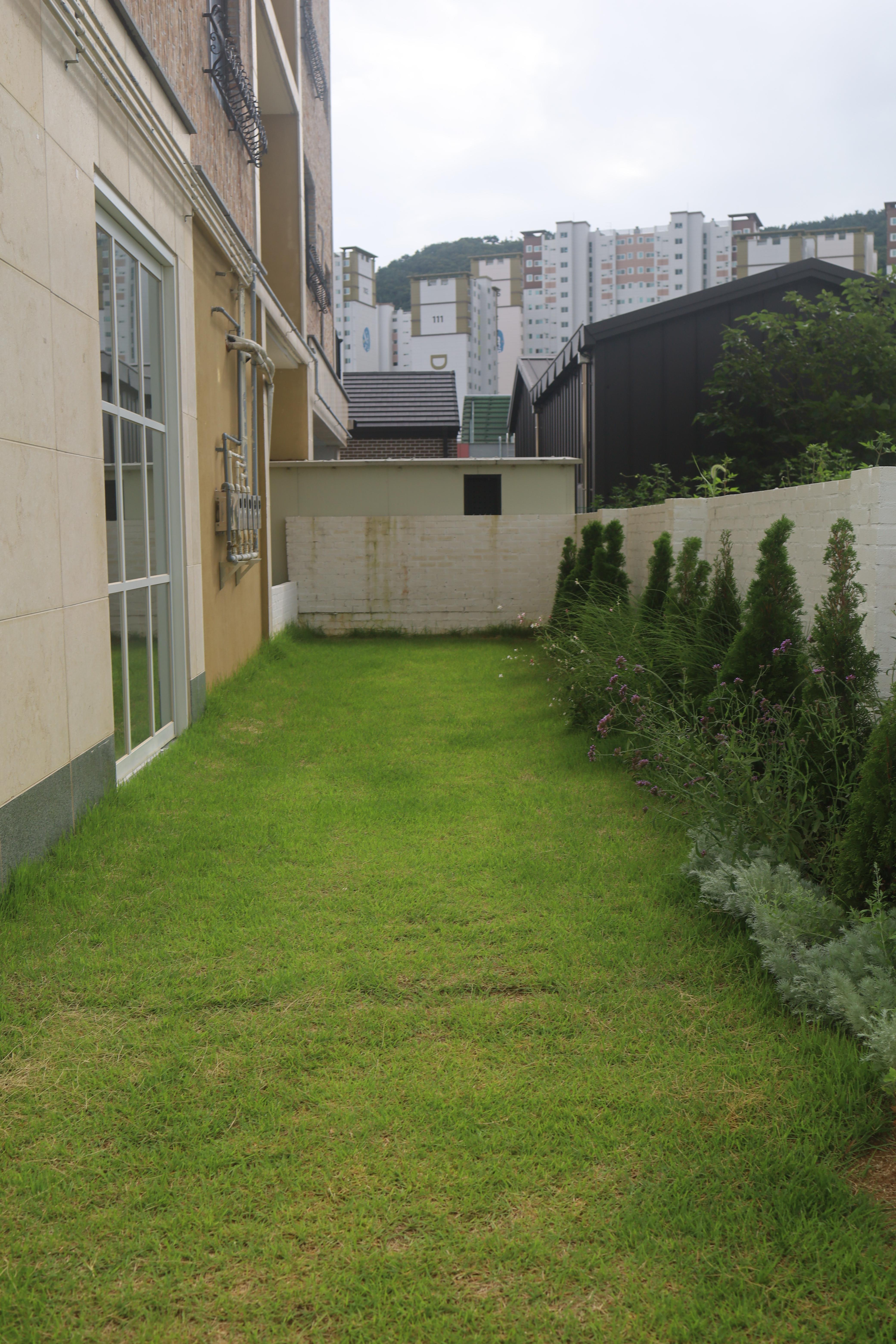 아까 위에서 말했던 밖에 심어진 잔디 조경의 모습인데, 내부에 큰 유리문으로 되어 있어 마치 하나의 큰 액자와도 같은 역할을 해주고 있었다.